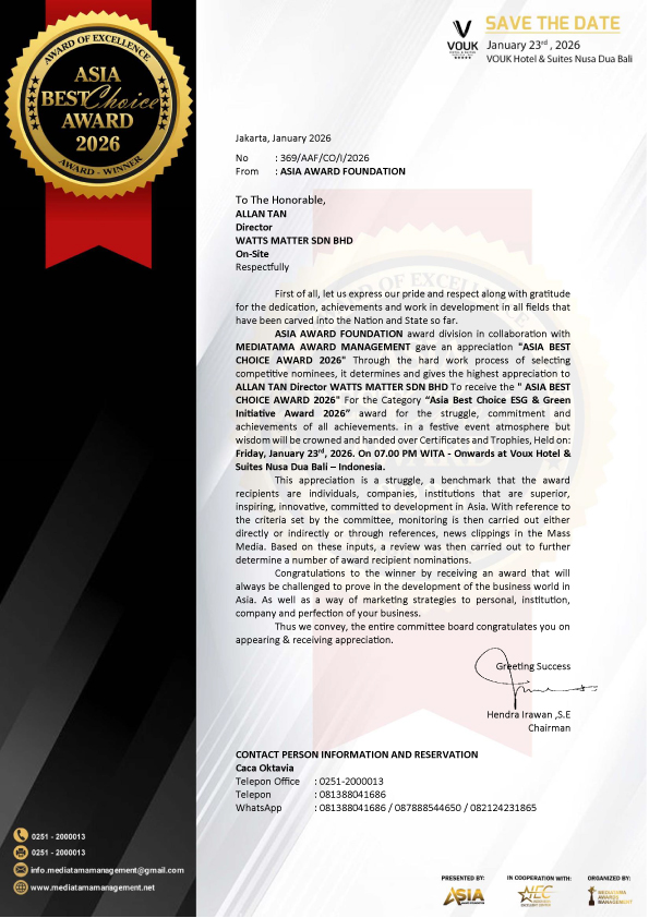 Watts-Matter WAAS, which is based in Malaysia provides a energy management services, including energy audits, lighting retrofits, HVAC optimization, and renewable energy procurement. Their goal is to help their clients reduce their energy consumption, save money on energy costs, and improve the sustainability of their operations.